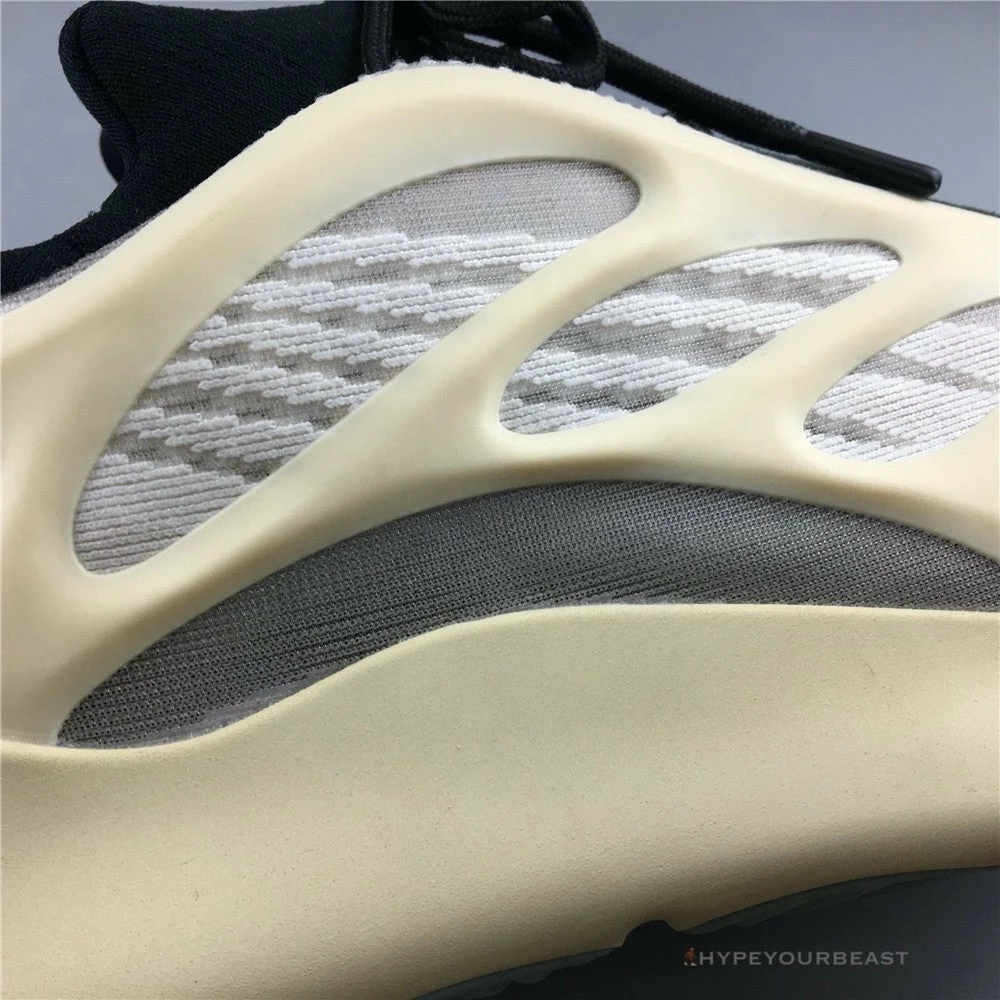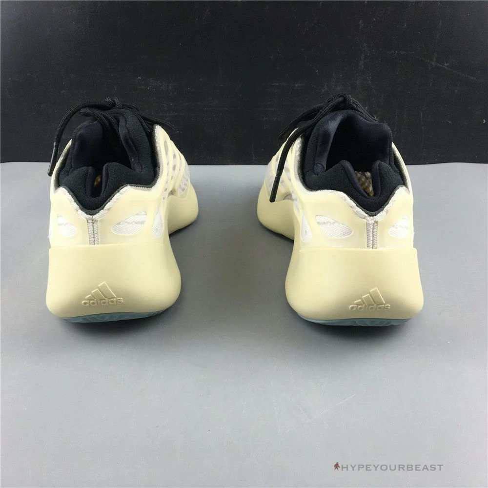 Adidas Yeezy 700 V3 represents the third version of the chunky silhouette collection of Kanye West. It owns an elegant white mesh base, soles, and upper. It gives you variance through inclusions of tonal laces and a black nylon tongue. To finish its clean and chic style, Adidas Yeezy 700 V3 Azael has an RPU cage with glow-in-the-dark features. A pair of this is perfect for comfortable usage and nailing your fashion sense.