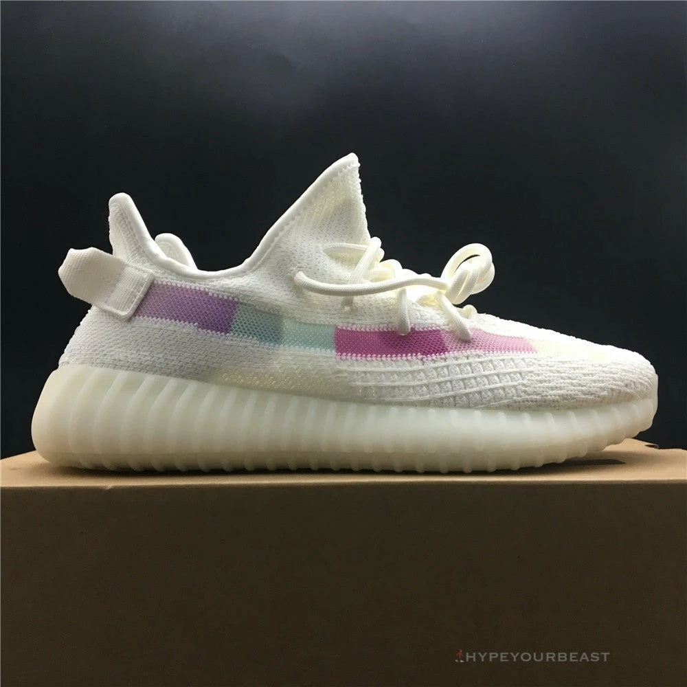Adidas Yeezy Boost 350 V2 Cloud White can be customized with pink, purple, and light blue lateral side-striped. It gives additional spice to the clean all-white accent of sneakers. Through this, you can enjoy the balance hues of white PrimeKnit, translucent soles, and varieties of pastel colors on its stripes. Transformed and designed Adidas Yeezy Boost 350 V2 Cloud White made the sneaker cooler on your feet.
