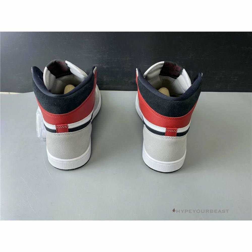 Dashing high-top sneakers are now introduced through the Air Jordan 1 High ‘Light Smoke Grey’. This pair of sneakers present light grey, black, white, and red colorways. Its upper base construction is made from white leather with Light Smoke Grey accents on the forefoot, side panels, eyelets, and heels. Other than that, the sneakers feature a ravishing black Nike Swoosh on both sides of the shoe. As for the ankle collars, it has a red tone with black Jordan wings and a black backdrop. Paired with the ankle collars is the tongue tab which includes a black patch with red brandings. Grab Air Jordan 1 High ‘Light Smoke Grey’ and embody its killing style on your feet.