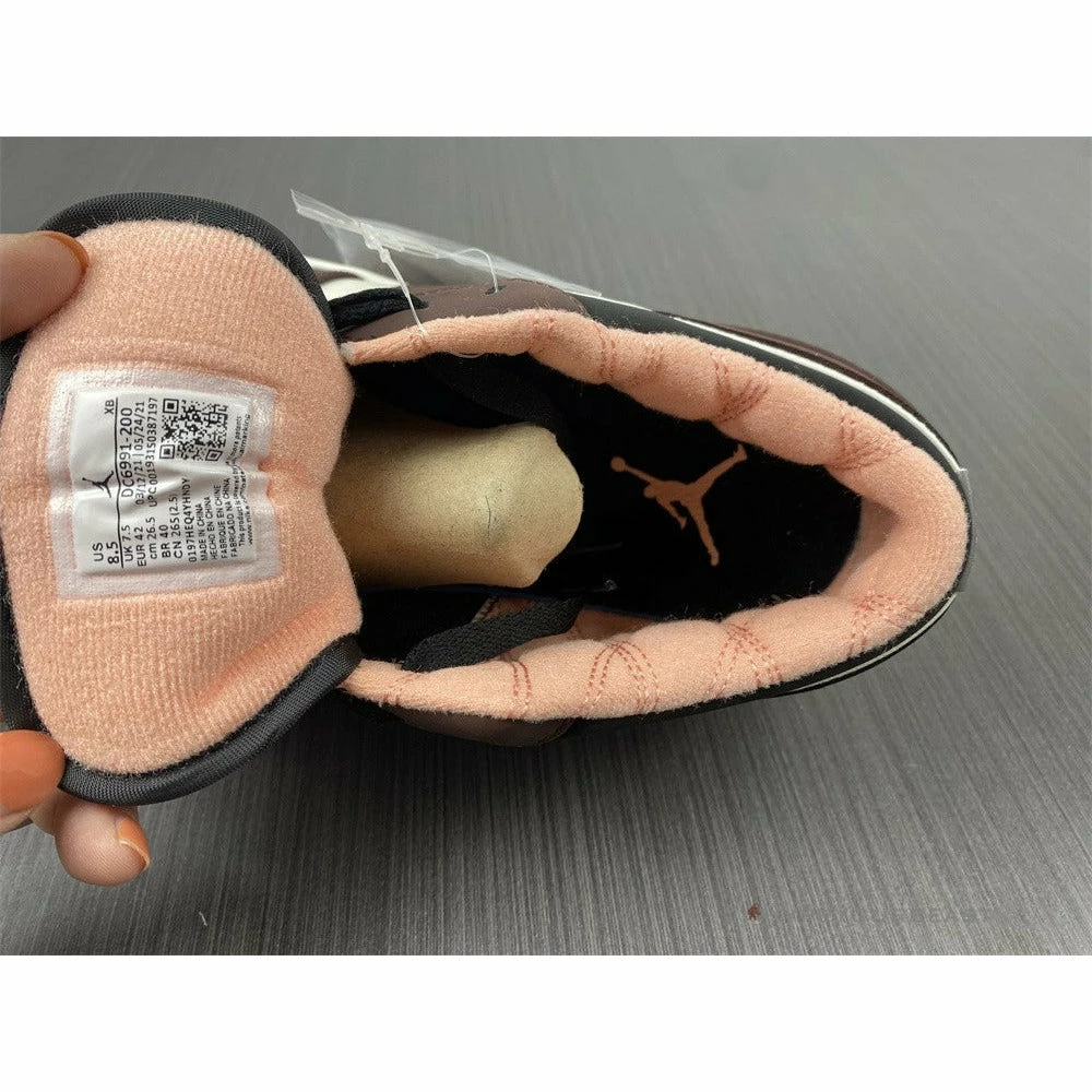 The sneaker features a clean and simple design, with a white leather upper and light brown accents on the heel, tongue and toe box. A contrasting black Jumpman logo on the tongue and brown Nike Swoosh add a touch of branding and complete the look. Enjoy this low-top pair and bring out a vintage style on your feet.