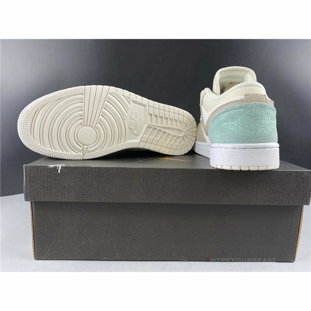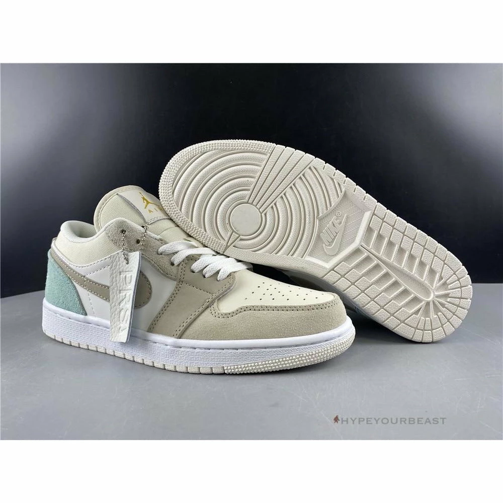 Air Jordan 1 Low Paris is evidence of a new brilliant design of the brand as it mixes and matches leathers and suede materials for extra rough texture to the low shoes. Its calming but elegant minimalist accent of faint pastel blue or sky grey gives you an innovative pair. It also wraps with pale yellow to white tones to give variance. Wearing Air Jordan 1 Low Paris Sky Grey makes you even confident with its clean style and iconic Jumpman logo on its tongue.
