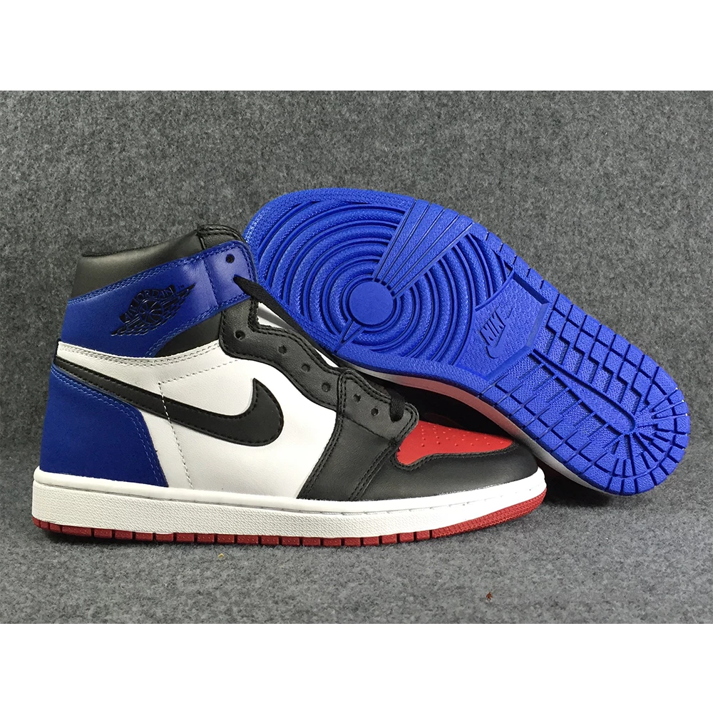 Nike x Air Jordan used the top three original Air Jordan 1 colorways and combined it to produce the Air Jordan 1 Retro High OG Top 3. The colorway includes the Chicago, Royal, and Bred/Banned. Therefore, Air Jordan 1 Retro High OG Top 3 consists of white or black bases and overlays as it emphasizes the red and blue upper and accents. The left and right shoes have remixed colorways as it brings you unique and impressive creativity. Yet still, it showcases the Nike Air branding, Air Jordan wings logo, and Nike Swoosh.Â
