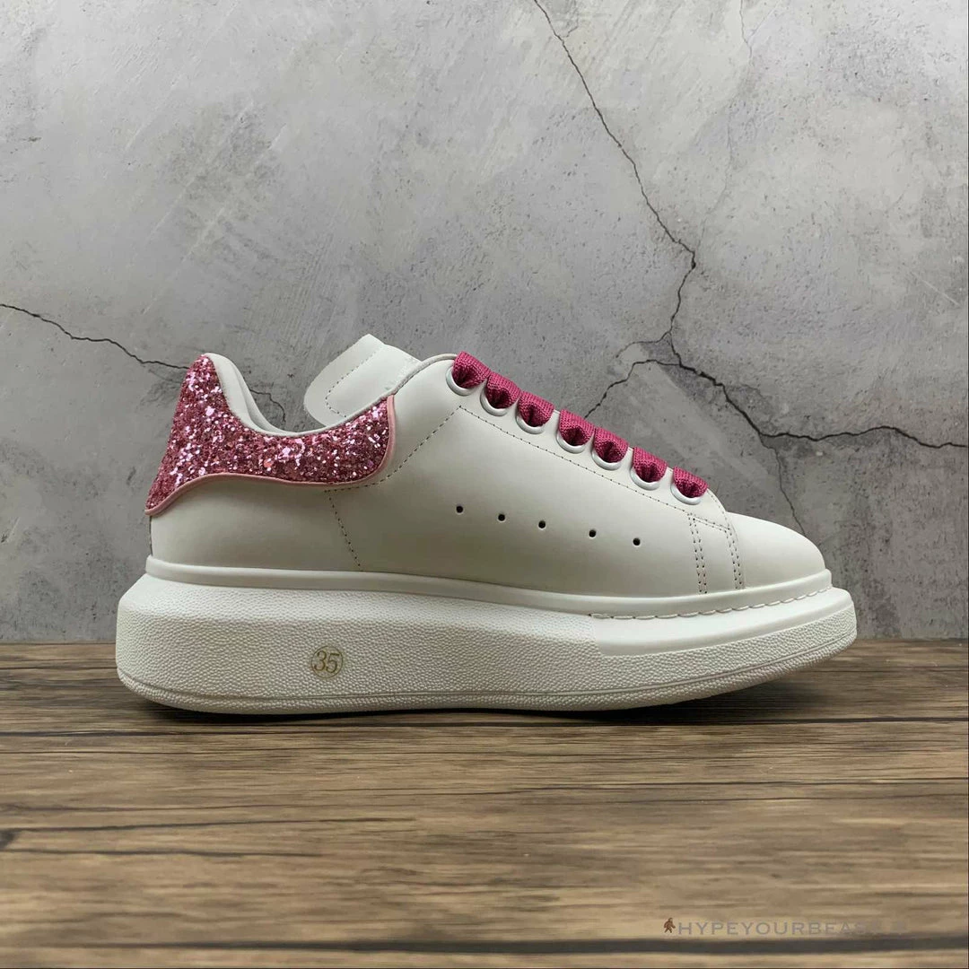 Grab the ever-unique Alexander McQueen White / Pink Sparkle sneakers to enhance your streetwear look.