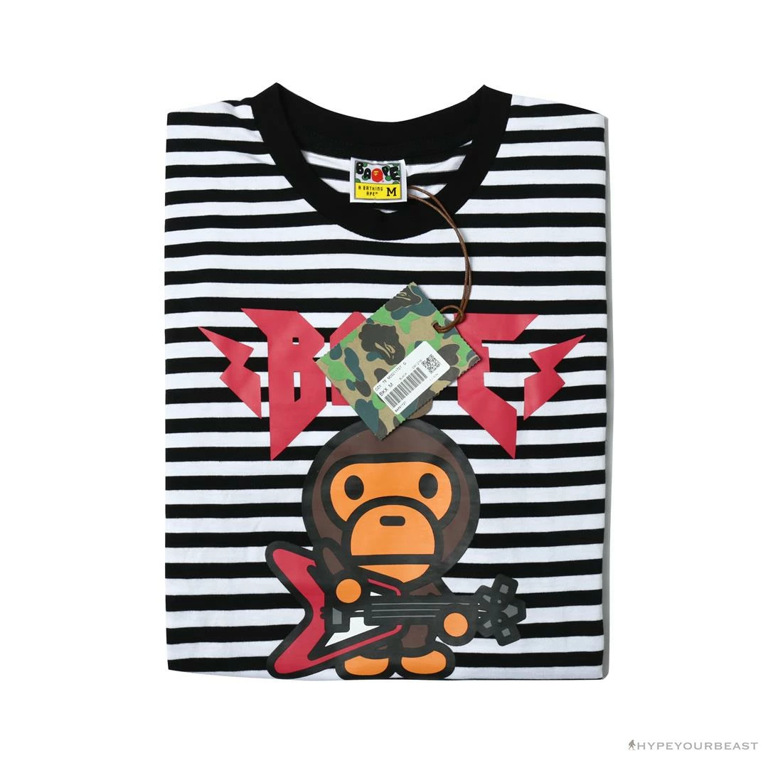Hypeyourbeast BAPE Baby Milo Rock Bass Player Striped Tee Shirt ‘BLACK’ Clothes