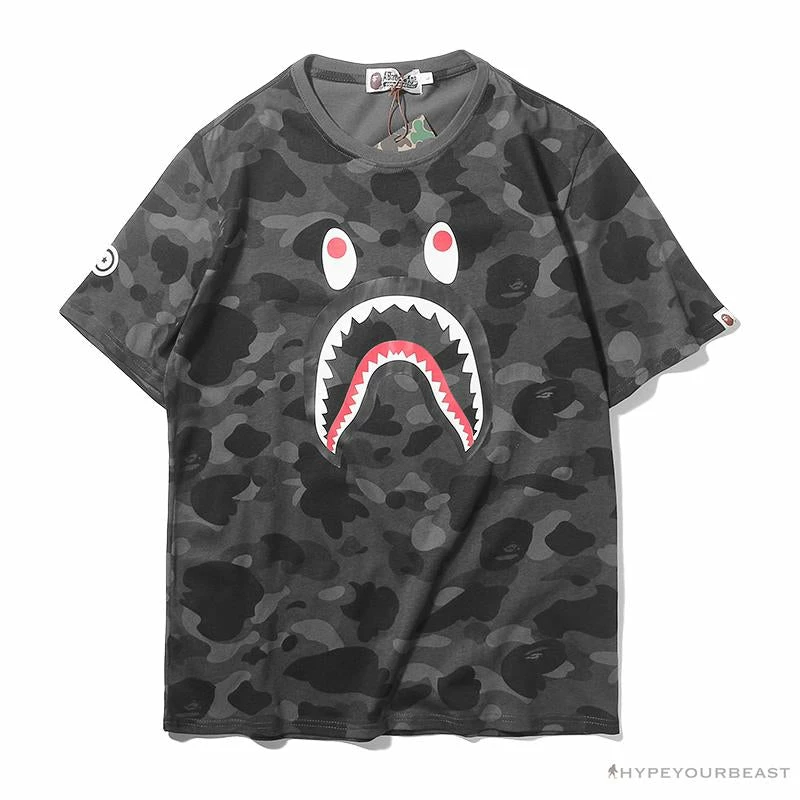 Hypeyourbeast Clothes BAPE Camouflage Shark Head Classic Cotton Short Sleeve Tee Shirt ‘BLACK’