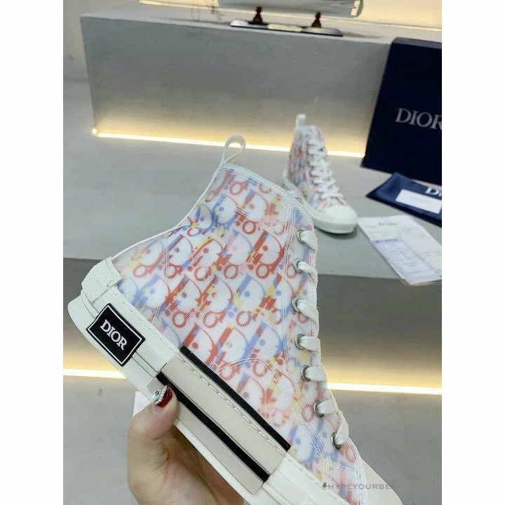 Besides the minimalist colorways of Dior B23, the brand still offers multicolor sneakers to give a fun and entertaining experience through its B23 high-top Dior Oblique Multi. It has iconic multiple hues with the Dior oblique canvas. Its white translucent effect still provides an aesthetic effect on the pair as it carries other white detailing on the laces, pull-on tabs, and toe caps. Even the outsoles of Dior B23 Multicolor are also constructed from white rubber while it carries the black and tan striped patches in the middle of the midsole. To complete the elegance, a Dior black and white logo are added on the midsole.