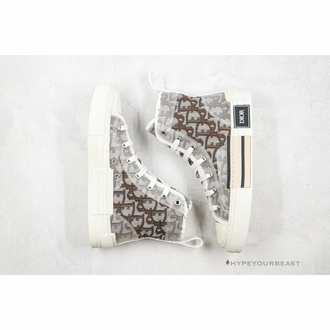 Striking high-top sneakers with brown Dior prints are showcased on the Dior High Top White Brown. This pair of footwear features the classic Dior logo prints in brown color. It even includes clear translucent overlays which made it more contemporary. The sneakers also have white pull-on tabs, white forefoot, white lacing system, and white midsoles. Other than that, Dior also added the stunning black and cream patch and Dior logo patch on the midsoles for extra style. Wear this pair of charismatic vintage sneakers and nail its overall look on your feet.
