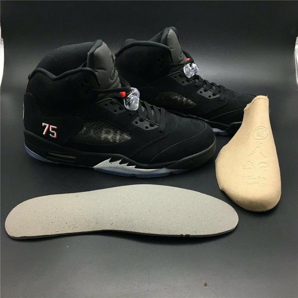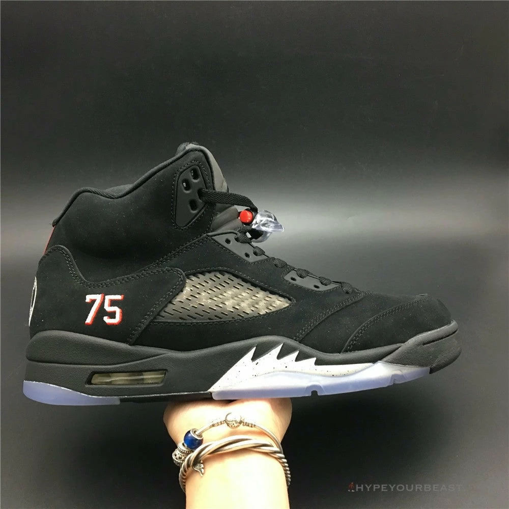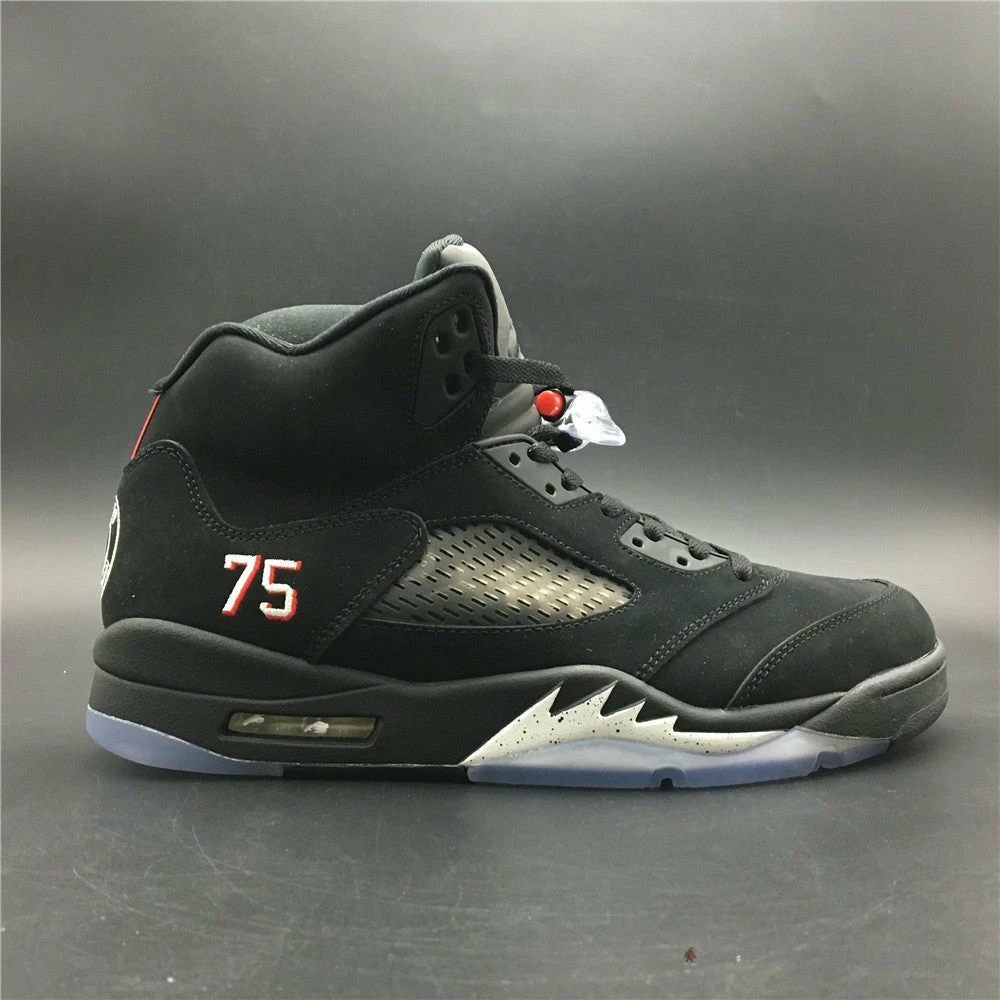 The fantastic collaboration of Jordan Brand and French professional soccer club PSG introduces an incredible pair of Air Jordan 5 Retro Paris Saint Germain. Its main colorway was inspired by the club’s uniforms, so it carries the black nubuck bases with white and red accents on the upper. The sneakers look to be all black-out from upper, but it also includes white and grey midsole tones with the visible Air technology features. Branding is also highlighted such as the “PARIS” text with Jumpman logo replacing the “A”, “75” embroidery on the sides, PSG x Air Jordan logo at the heels, and “Ici C’est” text inside each tongue. Air Jordan 5 Retro PSG indeed showcases all the captivating features of the two iconic brands.