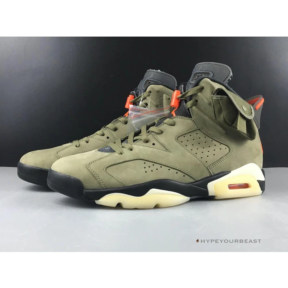 Bring on Travis Scott x Air Jordan 6 Retro Olive to your feet and check out how it enhances your fashion, comfortability, and overall streetwear outfit.