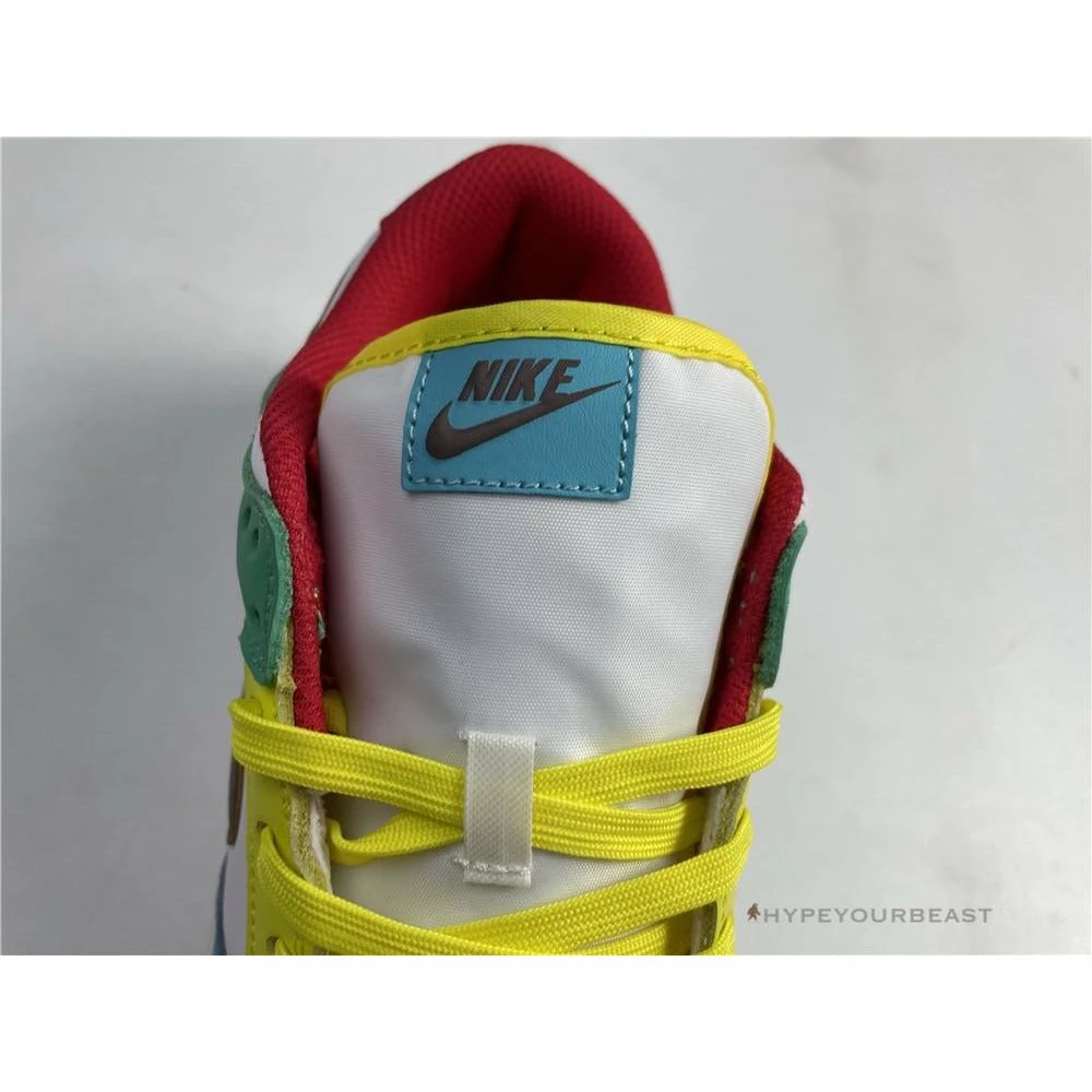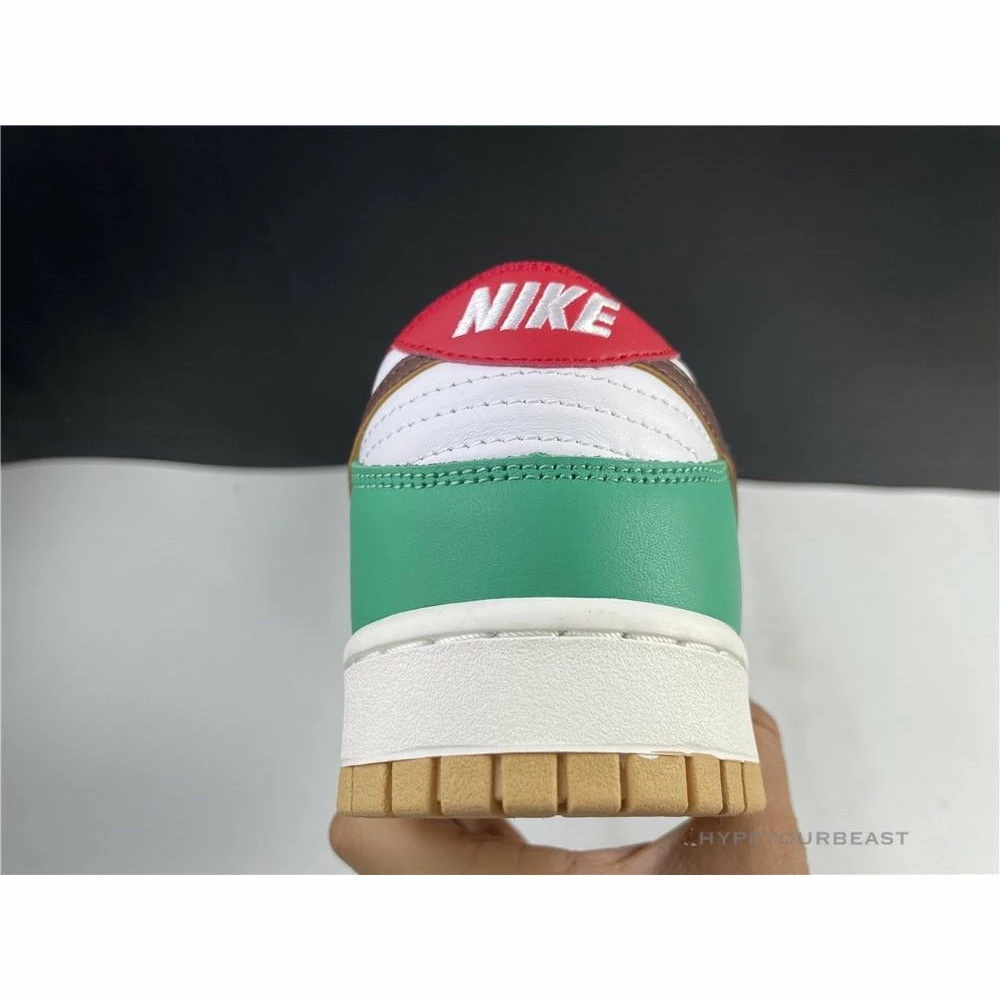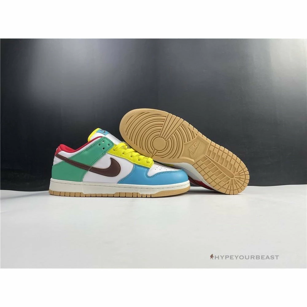 Multi-colored sneakers are the main feature of Nike Dunk Low Free 99. It carries white leather bases along with various colors of overlays. It includes Roma Green, powder blue, bright yellow, and red in different styles for each pair. However, these kicks showcase the Nike Swoosh in Light Chocolate hue. You can also see the sock liner with Free. 99 price stickers making it more appealing to the fans. Enjoy this impeccable footwear with its white midsoles and peach-tone rubber outsoles.