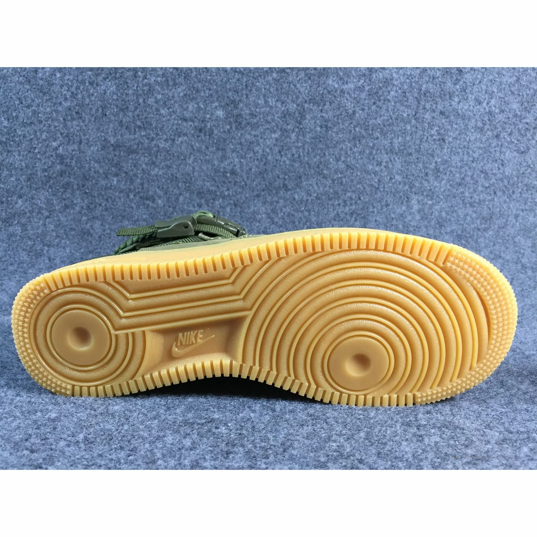 Honoring the Special Forces, Nike Air Force 1 released the Nike SF AF1 High sneakers. Nike Special Field Air Force 1 consists of a faded olive colorway throughout its upper. It is made from ballistic nylon upper to assure its toughness in all conditions. Nike SF AF1 High also constructed with dual adjustable and removable ankle straps for extra protection. Besides that, the special sneakers even own espionage pocket at the tongue as hidden storage. Nike Special Field Air Force 1 sneakers are completed with brown rubber outsoles with an embossed Air branding.