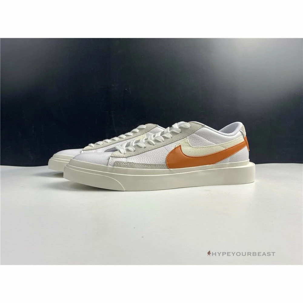 Sacai x Nike Blazer Low Orange White sneakers showcase two-tone style on your feet while it highlights double layerings and dual tongue accents. The sneakers include clean white bases with orange double layerings on the side panels and Nike Swooshes. Even its tongue owns dual tongues with two separate logos. Sacai x Nike Blazer Low Orange White also possess thick white mashed-up midsoles and white rubber outsoles. The low-top sneakers give you a unique experience to present the iconic Nike Blazer Low and Japan’s Sacai brand.