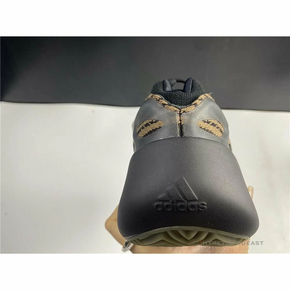 Yeezy 700 Brown Eremiel features the classic Adidas Yeezy 700 V3 look, but it has a bolder cooper streak touch. Brown Yeezy 700 V3 has the classic black and cooper mesh upper with additional glow-in-the-dark RPU overlays. Besides that, the pair also carries sleeking earth-brown midsoles with black gum complexions outsoles. The sneakers bring you a contemporary style perfect for any errand and outfit of the day. Adidas Yeezy 700 V3 Clay Brown Eremiel will never let you down through its sleeking touch and excellent shoe performance.Â